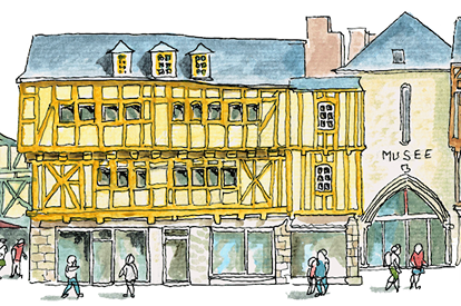 - La Rue du Port, animée et colorée, bordée de maisons à colombages au charme breton